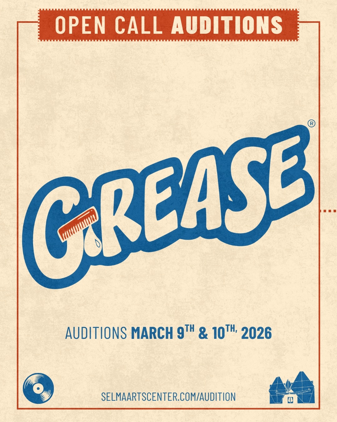 Video Auditions: If you are unable to make the general auditions (we strongly recommend an in person audition), an accompanied video recording of the required materials specified above may be submitted on or before March 10th, 2026 at 8:00 PM to SelmaArtsCenterAuditions@gmail.com. Please send via unlisted YouTube link.